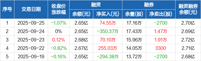 济川药业:融资净买入74.55万元,融资余额2.65亿元(09-25)