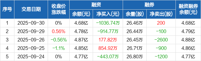 山鹰国际:融资净偿还1036.74万元,融资余额4.68亿元(09-30)