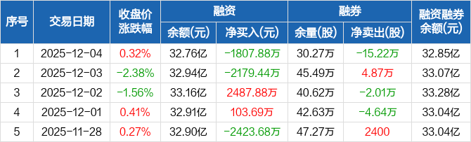 恒生电子:融资净偿还1807.88万元,融资余额32.76亿元(12-04)