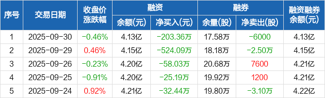 康恩贝:连续6日融资净偿还累计1425.51万元(09-30)