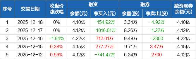 淮河能源:融资净偿还154.92万元,融资余额4.1亿元(12-18)