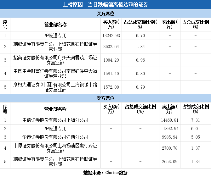 沪股通现身龙虎榜,精达股份跌停(12-16)