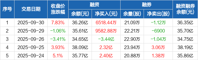 长电科技:融资净买入6518.44万元,融资余额36.26亿元(09-30)