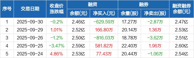 金晶科技:融资净偿还629.59万元,融资余额2.46亿元(09-30)