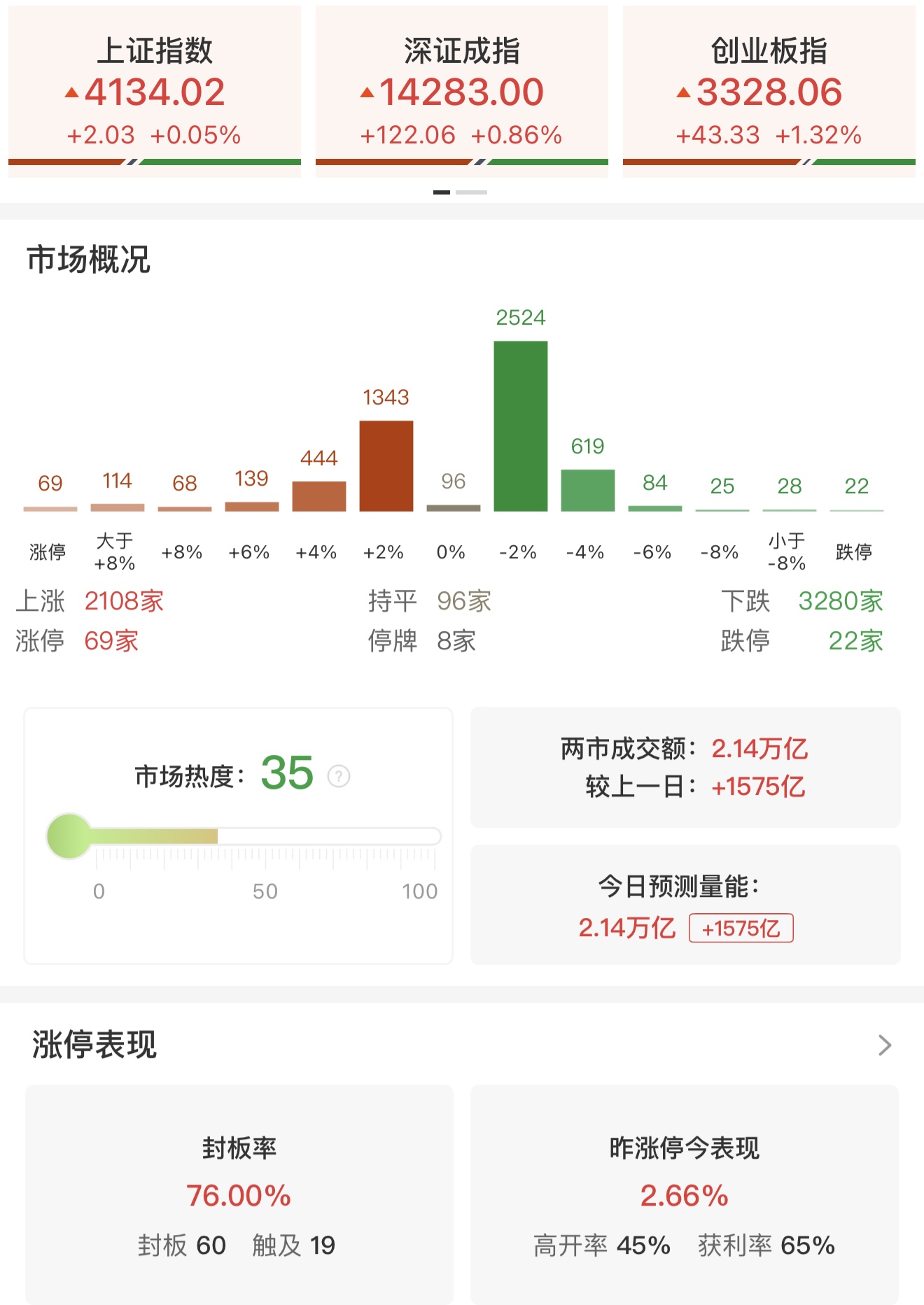 财联社2月12日电,三大指数集体收涨,创业板指、科创50指数均涨超1%。大小指数分化,微盘股指数跌超1%。沪深两市成交额2.14万亿,较上一个交易日放量1575亿。全市场超3200只个股下跌。从板块来看,算力产业链集体爆发,算力租赁概念走强,大位科技4连板,首都在线、优刻得20cm涨停。CPO概念快速拉升,天孚通信、罗博特科均续创历史新高。算力芯片概念午后走高,芯原股份大涨超10%。液冷服务器概念表现活跃,川润股份4天2板,大元泵业涨停。电网设备概念集体走强,思源电气、四方股份均创新高,望变电气、顺钠股份涨停。下跌方面,大消费板块集体走弱,影视院线、旅游酒店、零售、食品饮料等板块跌幅居前,横店影视、海欣食品跌停。截至收盘,沪指涨0.05%,深成指涨0.86%,创业板指涨1.32%。