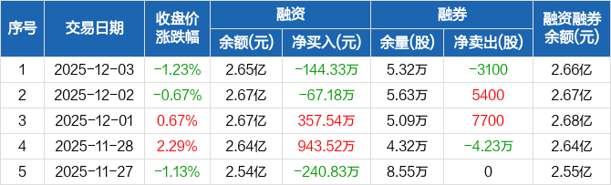 泰豪科技:融资净偿还144.33万元,融资余额2.65亿元(12-03)