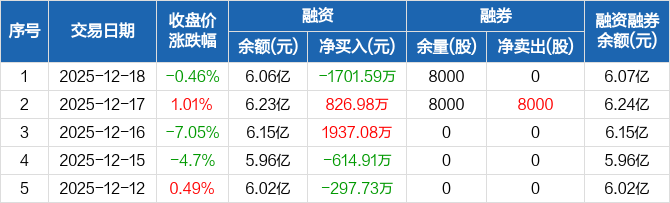 龙溪股份:融资净偿还1701.59万元,融资余额6.06亿元(12-18)