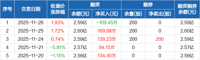 益佰制药:融资净偿还109.45万元,融资余额2.59亿元(11-26)
