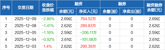 益佰制药:融资净买入764.52万元,融资余额2.69亿元(12-09)