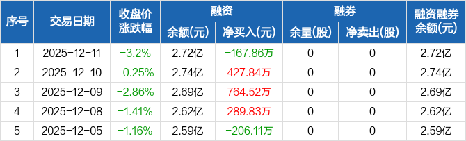 益佰制药:融资净偿还167.86万元,融资余额2.72亿元(12-11)