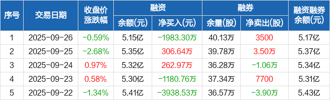 中孚实业:融资净偿还1983.3万元,融资余额5.15亿元(09-26)