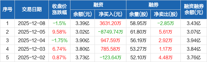 中孚实业:融资净买入3631.2万元,融资余额3.39亿元(12-08)