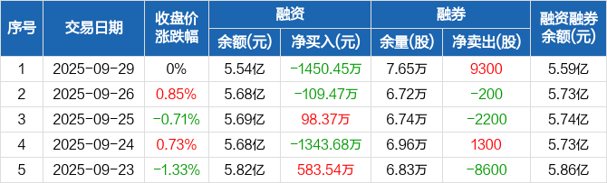 青岛啤酒:融资净偿还1450.45万元,融资余额5.54亿元(09-29)