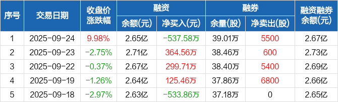 市北高新:融资净偿还537.58万元,融资余额2.65亿元(09-24)