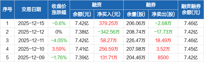 绿地控股:融资净买入379.25万元,融资余额7.42亿元(12-15)