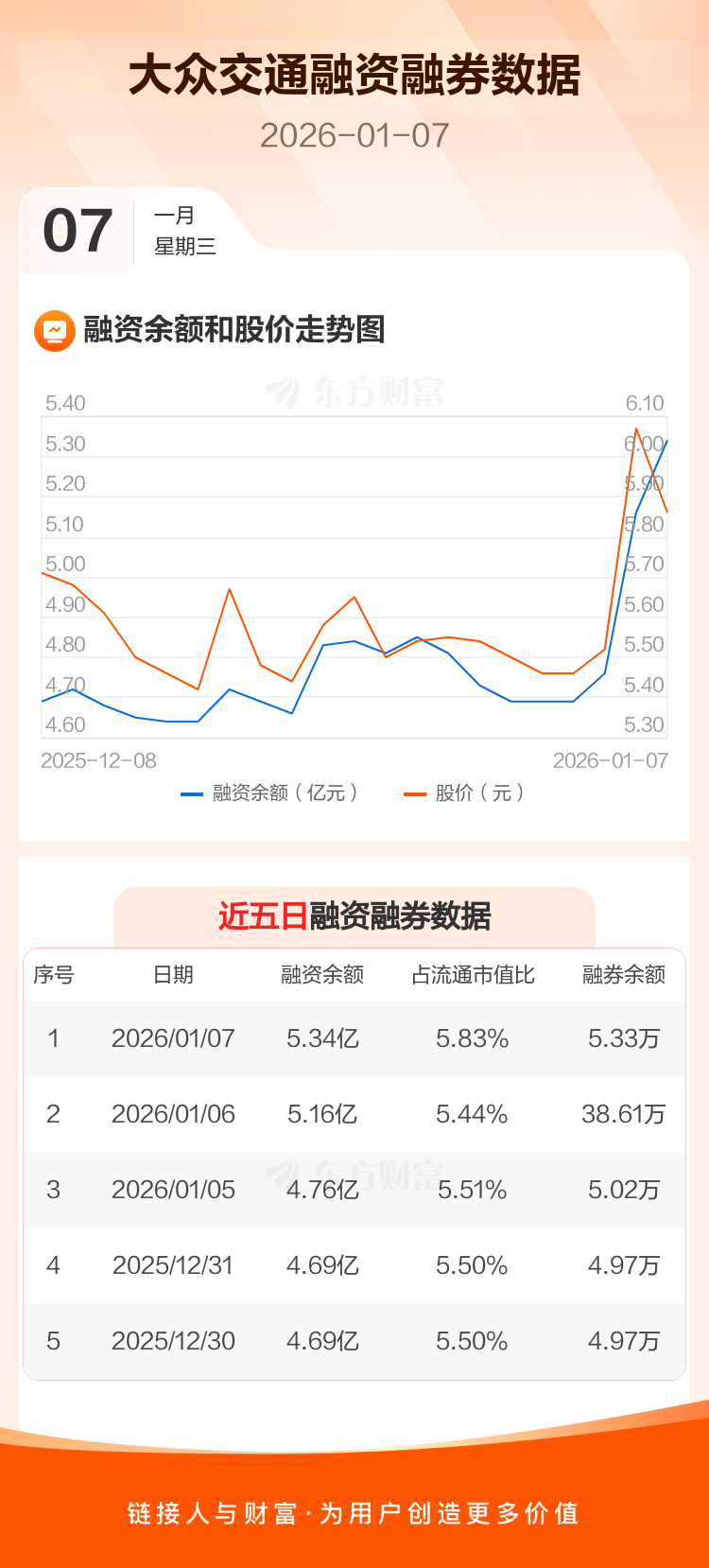 交易所最新数据显示,大众交通于2026年1月7日获融资买入1.10亿元,融资偿还9166.85万元,当日融资净买入1833.01万元。目前,该股融资余额5.34亿,占流通市值比例为5.83%。