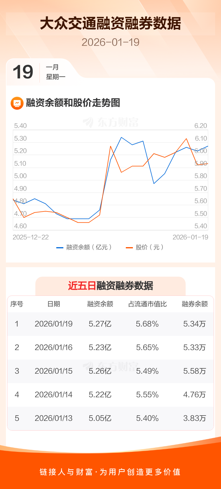交易所最新数据显示,大众交通于2026年1月19日获融资买入2638.46万元,融资偿还2256.25万元,当日融资净买入382.21万元。目前,该股融资余额5.27亿,占流通市值比例为5.68%。
