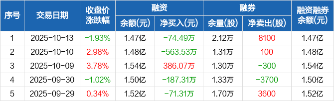 国新能源:融资净偿还74.49万元,融资余额1.47亿元(10-13)