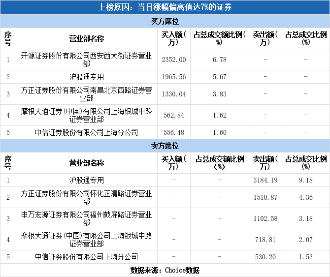 沪股通现身龙虎榜,国新能源涨停(10-14)