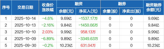海立股份:融资净偿还1537.17万元,融资余额9.69亿元(10-14)