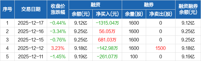 海立股份:融资净偿还1315.04万元,融资余额9.12亿元(12-17)