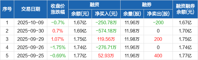 光大嘉宝:融资净偿还250.78万元,融资余额1.67亿元(10-09)
