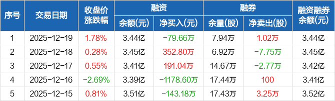 华谊集团:融资净偿还79.66万元,融资余额3.44亿元(12-19)