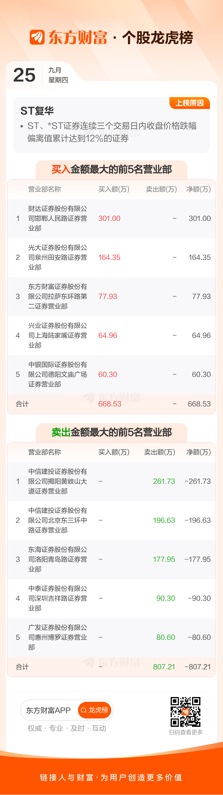 ST复华(600624)龙虎榜数据(09-25)