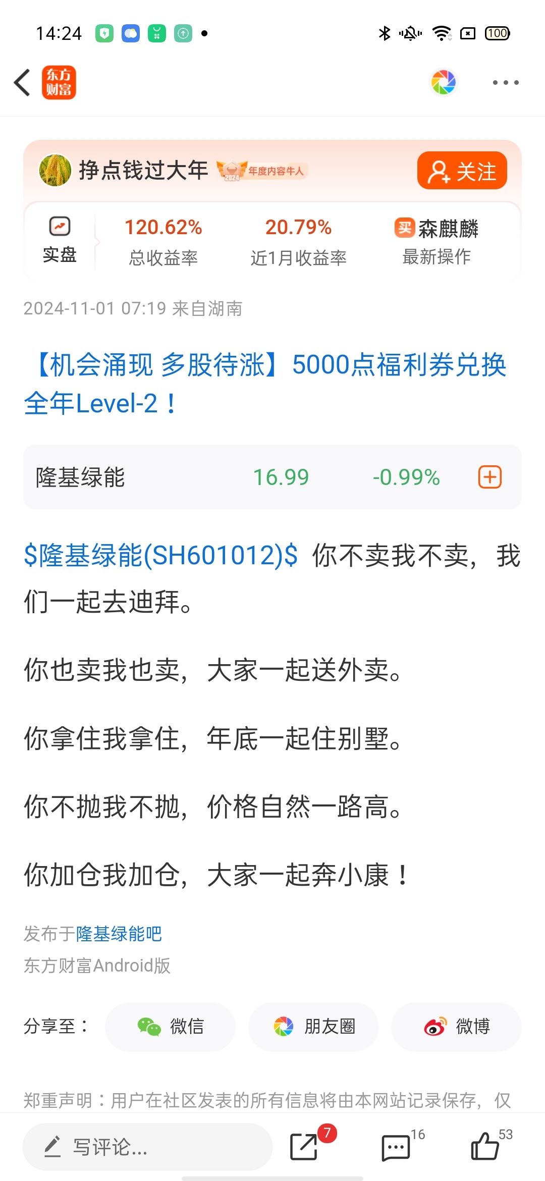温馨提示: 1.根据《证券法》规定,禁止编造、传播虚假信息或者误导性信息,扰乱证券市场;2.用户在本社区发表的所有资料、言论等仅代表个人观点,与本网站立场无关,不对您构成任何投资建议。用户应基于自己的独立判断,自行决定证券投资并承担相应风险。《东方财富社区管理规定》