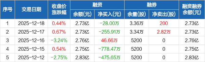 龙头股份:融资净偿还28万元,融资余额2.73亿元(12-18)