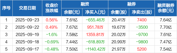 浙数文化:融资净偿还655.46万元,融资余额7.61亿元(09-23)