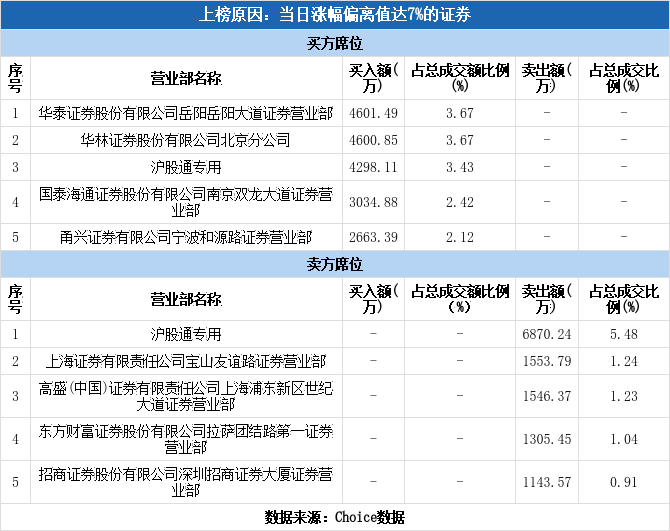 沪股通现身龙虎榜,大众公用涨停(11-25)