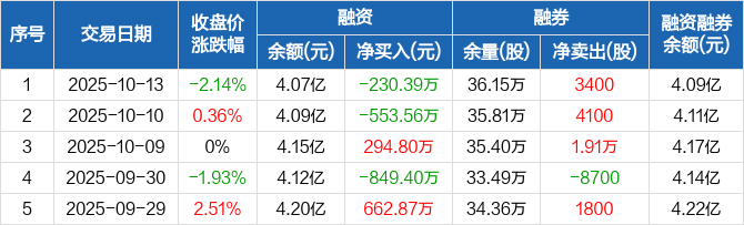 爱建集团:融资净偿还230.39万元,融资余额4.07亿元(10-13)
