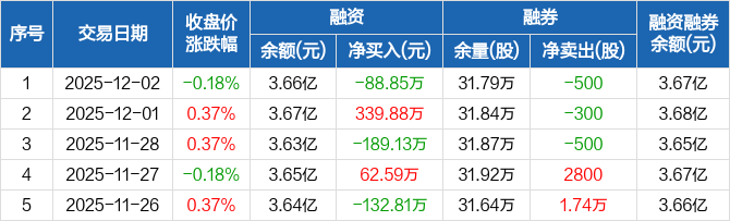 爱建集团:融资净偿还88.85万元,融资余额3.66亿元(12-02)