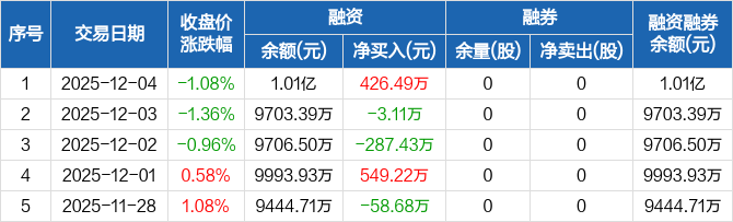 乐山电力:融资净买入426.49万元,融资余额1.01亿元(12-04)