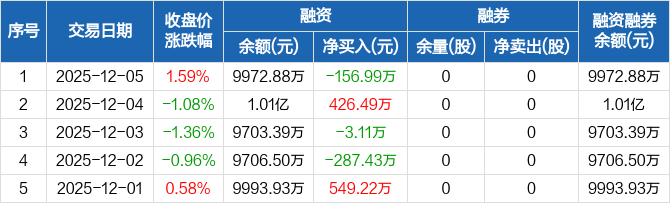 乐山电力:融资净偿还156.99万元,融资余额9972.88万元(12-05)
