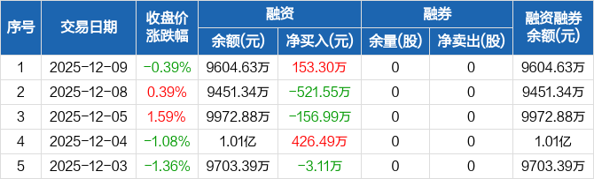 乐山电力:融资净买入153.3万元,融资余额9604.63万元(12-09)