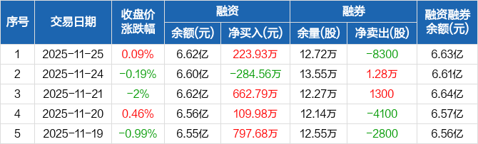 外高桥:融资净买入223.93万元,融资余额6.62亿元(11-25)