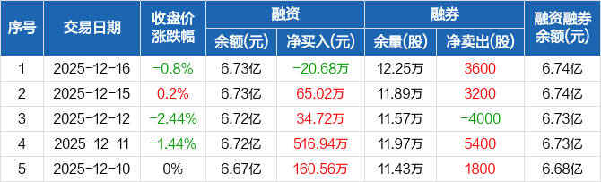 外高桥:融资净偿还20.68万元,融资余额6.73亿元(12-16)