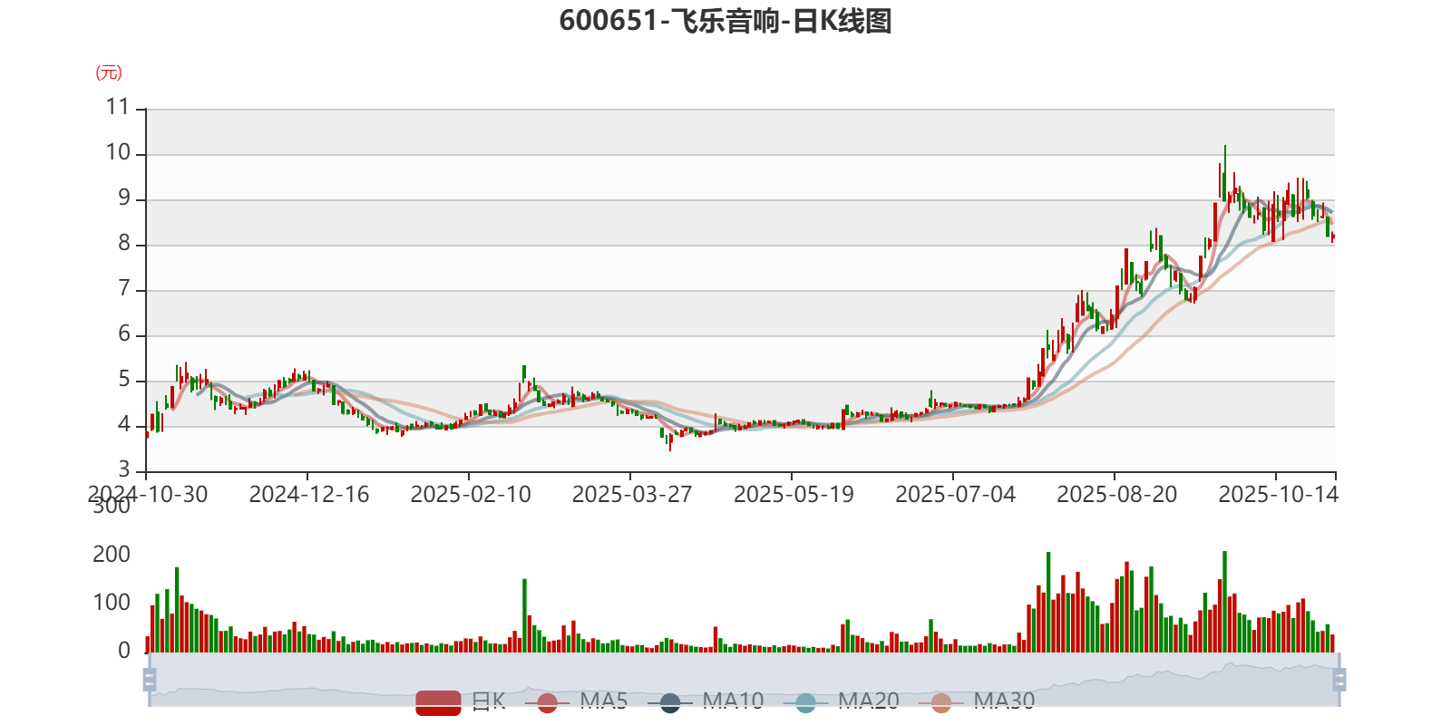 以10月29日收盘价计算,飞乐音响目前市盈率(TTM)约为414.6倍,市净率(LF)约8.26倍,市销率(TTM)约10.76倍。