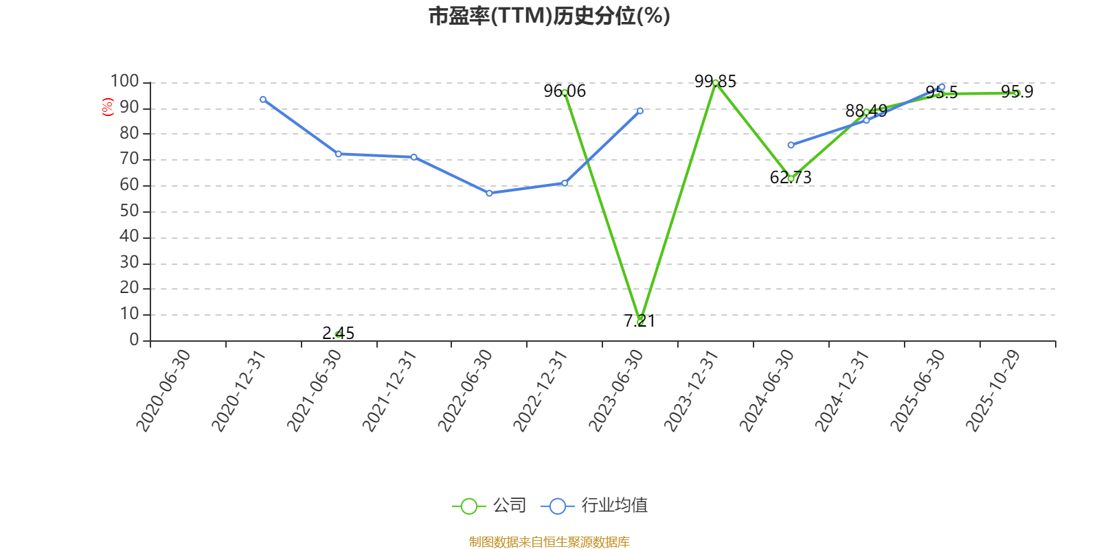 市盈率、市净率为负时,不显示当期分位数,会导致折线图中断。
