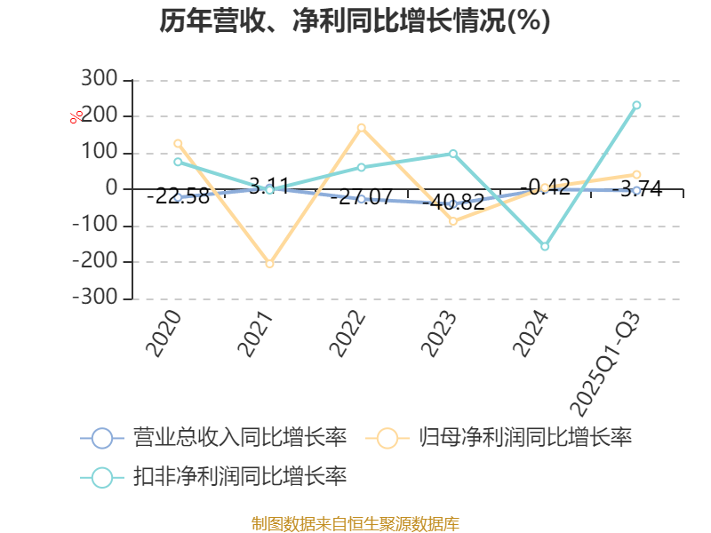 负债重大变化方面,截至2025年三季度末,公司一年内到期的非流动负债较上年末增加2596.86%,占公司总资产比重上升14.04个百分点;长期借款较上年末减少93.98%,占公司总资产比重下降13.78个百分点;应付票据及应付账款较上年末减少15.33%,占公司总资产比重下降1.37个百分点;应付职工薪酬较上年末减少32.07%,占公司总资产比重下降0.51个百分点。