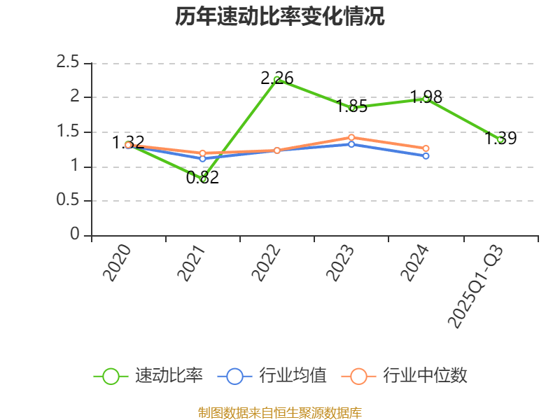 2025年前三季度,公司流动比率为1.65,速动比率为1.39。