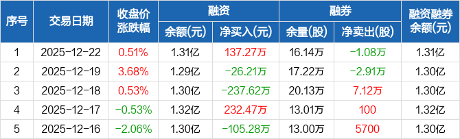 申华控股:融资净买入137.27万元,融资余额1.31亿元(12-22)