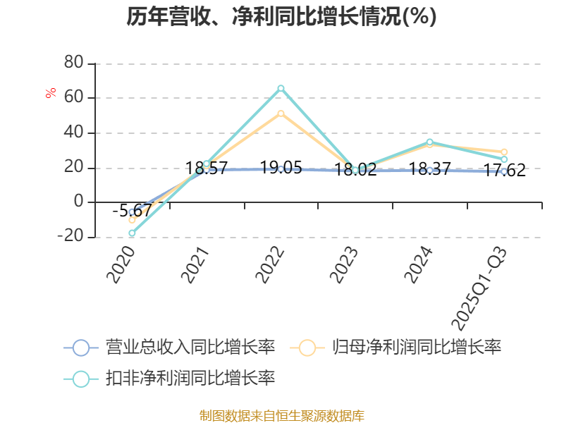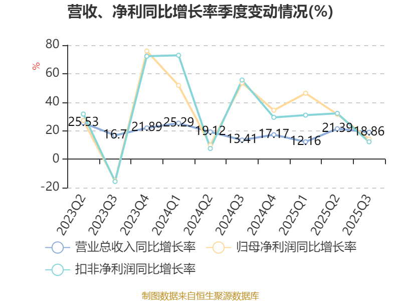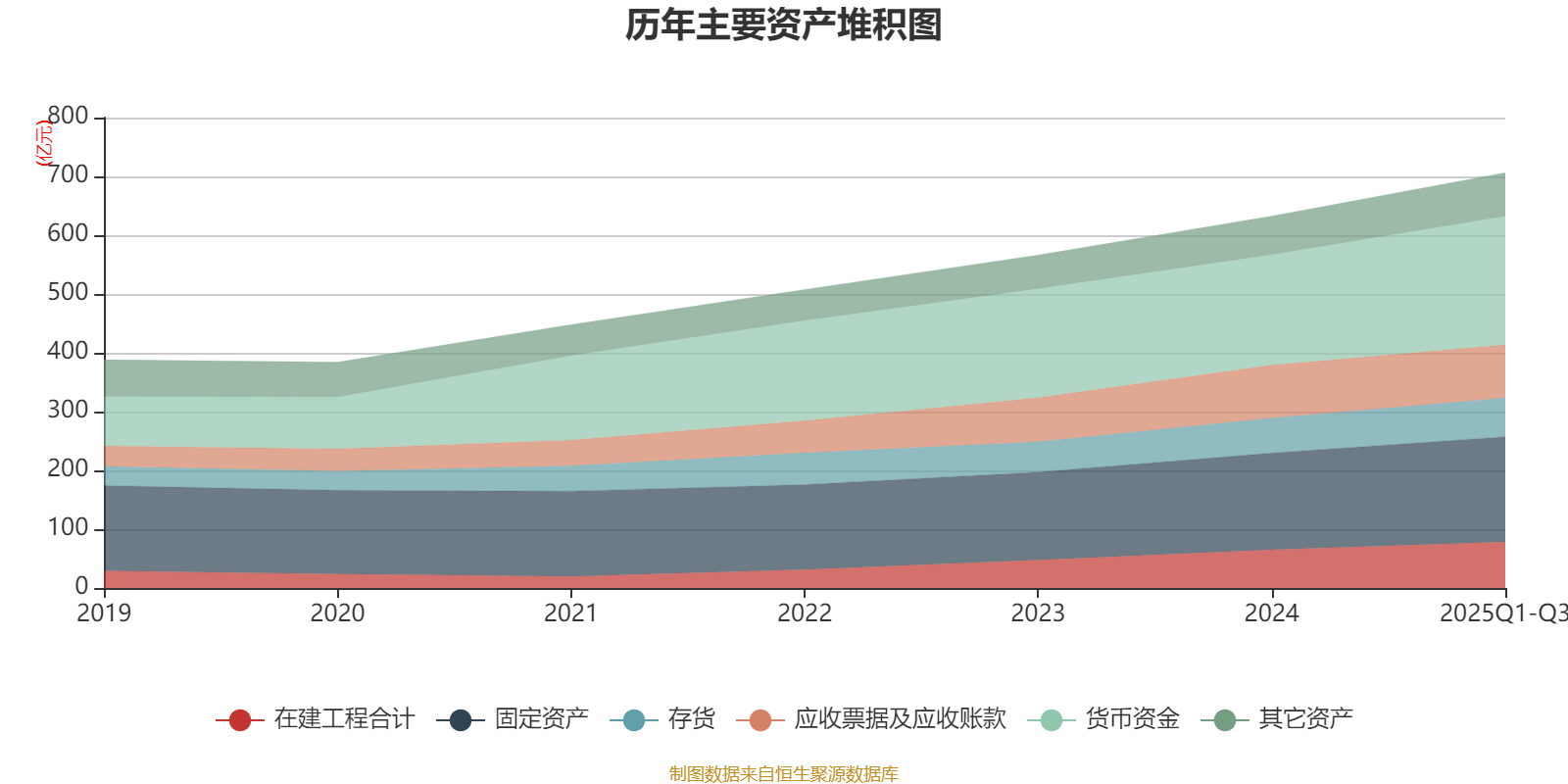 资产重大变化方面,截至2025年三季度末,公司应收票据及应收账款较上年末增加0.48%,占公司总资产比重下降1.42个百分点;货币资金较上年末增加16.39%,占公司总资产比重上升1.25个百分点;在建工程合计较上年末增加20.1%,占公司总资产比重上升0.78个百分点;固定资产较上年末增加8.81%,占公司总资产比重下降0.67个百分点。