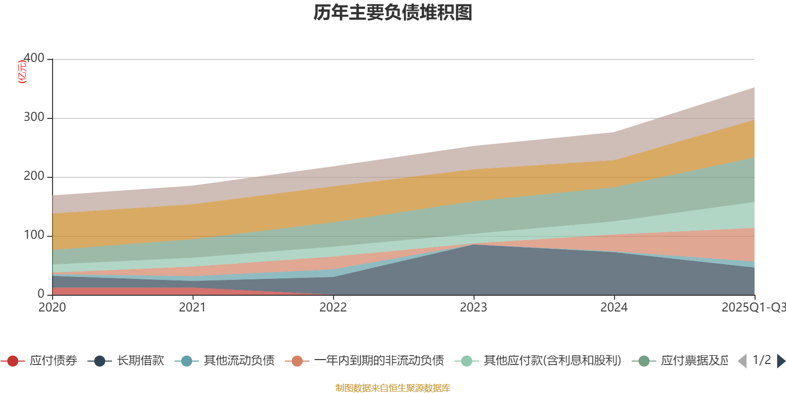 负债重大变化方面,截至2025年三季度末,公司长期借款较上年末减少36.3%,占公司总资产比重下降4.9个百分点;一年内到期的非流动负债较上年末增加100.28%,占公司总资产比重上升3.57个百分点;其他应付款(含利息和股利)较上年末增加97.07%,占公司总资产比重上升2.69个百分点;短期借款较上年末增加39.22%,占公司总资产比重上升1.79个百分点。