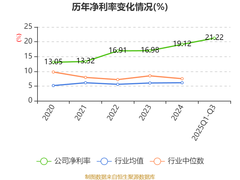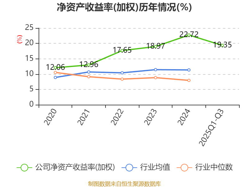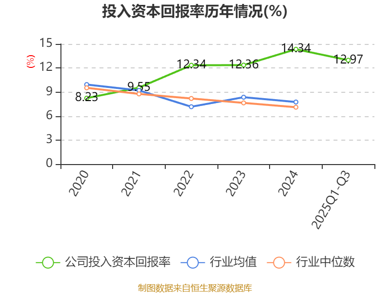 盈利能力方面, 2025年前三季度公司加权平均净资产收益率为19.35%,同比上升2.35个百分点。公司2025年前三季度投入资本回报率为12.97%,较上年同期上升2.59个百分点。