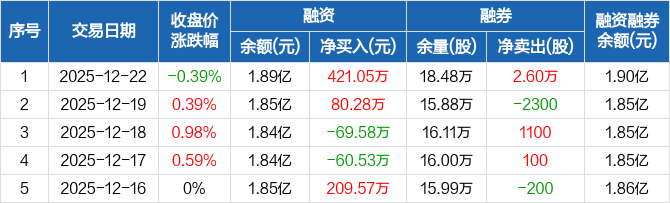 外服控股:融资净买入421.05万元,融资余额1.89亿元(12-22)