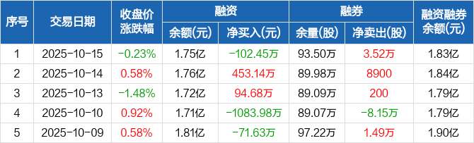 陆家嘴:融资净偿还102.45万元,融资余额1.75亿元(10-15)