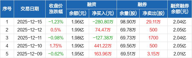陆家嘴:融资净偿还280.8万元,融资余额1.96亿元(12-15)